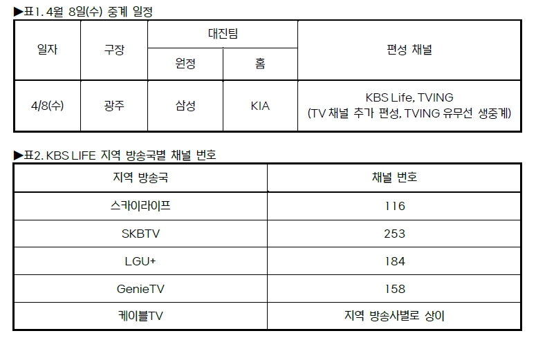 2026 KBO리그 경기 중 일부 경기의 개시 시간이 다음과 같이 변경됐다.