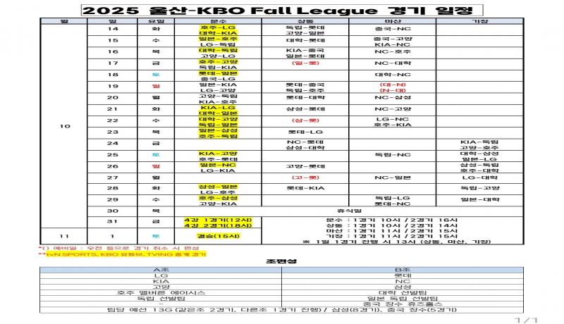 - 2025 울산-KBO Fall League 개막, 대학선발팀 KIA에 11-10 승리 - 대학 선발팀 개막전부터 이변 연출…대학 박서진 대회 첫승, KIA 박상준 대회 1호 홈런 KBO가 주최하고 울산광역시와 문화체육관광부의 후원으로 개최되는..
