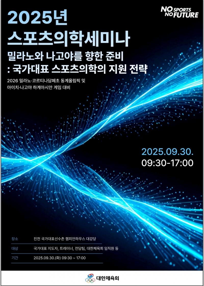 대한체육회(회장 유승민)는 9월 30일(화) 진천 국가대표선수촌 챔피언하우스 3층 대강당에서 '2025년 스포츠의학세미나'를 개최했다.