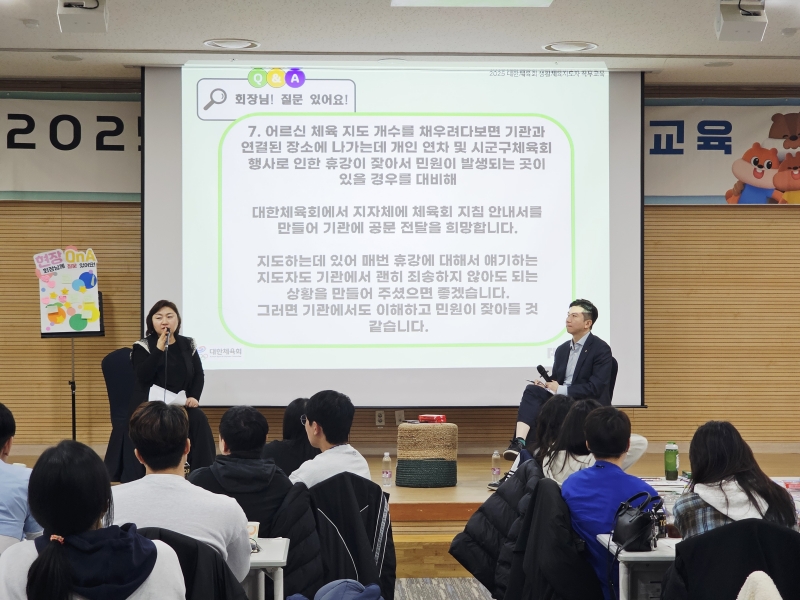 생활체육지도자 직무교육은 생활체육지도자의 사명감과 전문성을 강화하고, 현장의 생생한 목소리를 직접 듣기 위한 자리로, 올해 14회차를 맞은 이번 교육에서는 유승민 회장의 토크콘서트를 진행하고, 지도자 처우 개선과 제도적 지원방안에 대해서도 함께 논의했다.