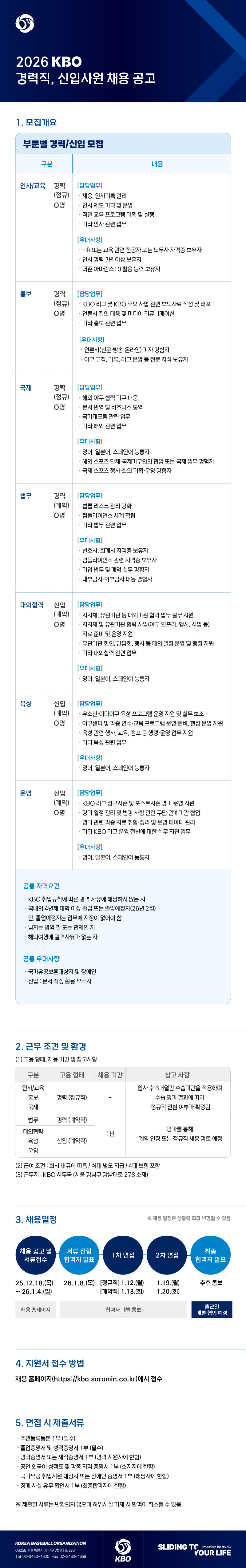 KBO리그 및 퓨처스리그 경기 운영 및 행정 업무