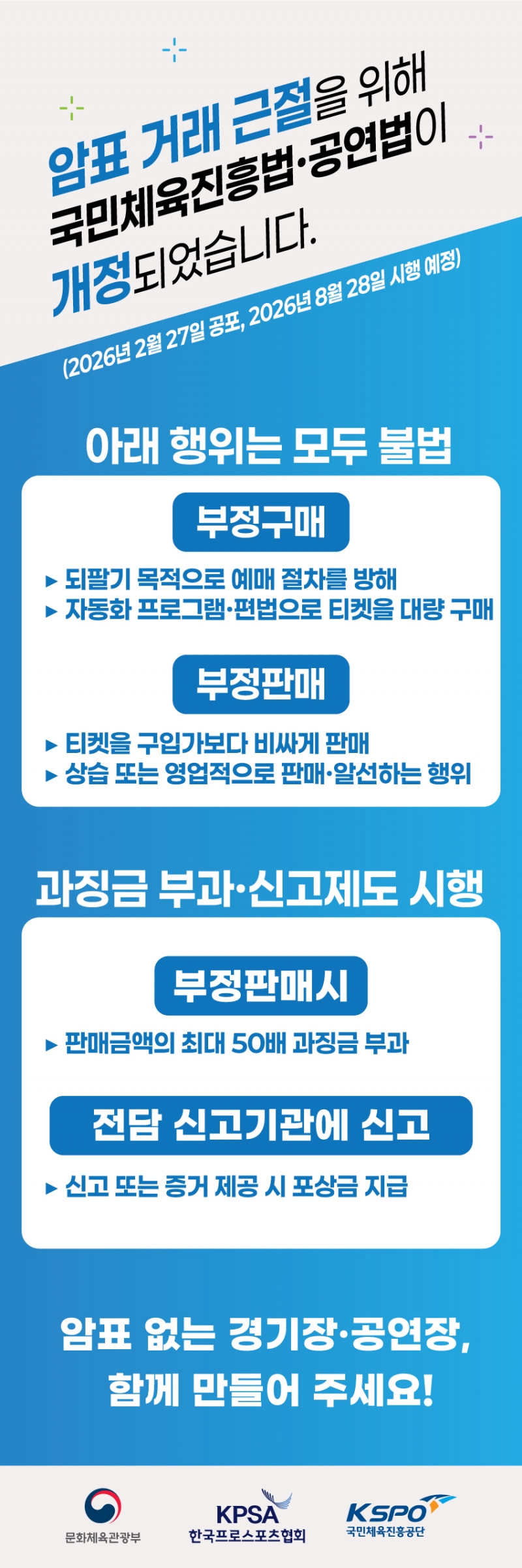 KBO는 문화체육관광부와 함께 2026 신한SOL KBO리그 개막전에 맞춰 암표 근절을 위한 캠페인에 참여한다.