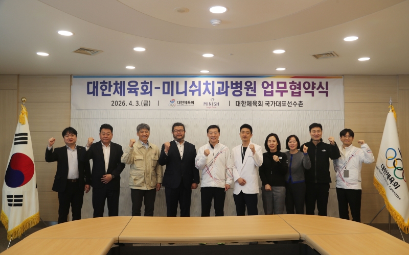 대한체육회(회장 유승민)는 4월 3일(금) 미니쉬치과병원(병원장 곽해성)과 대한민국 국가대표 선수 및 지도자와 대한체육회 임직원들의 치아 건강을 위하여 신속한 의료 서비스 및 치료 지원에 대한 의료협약을 체결했다.