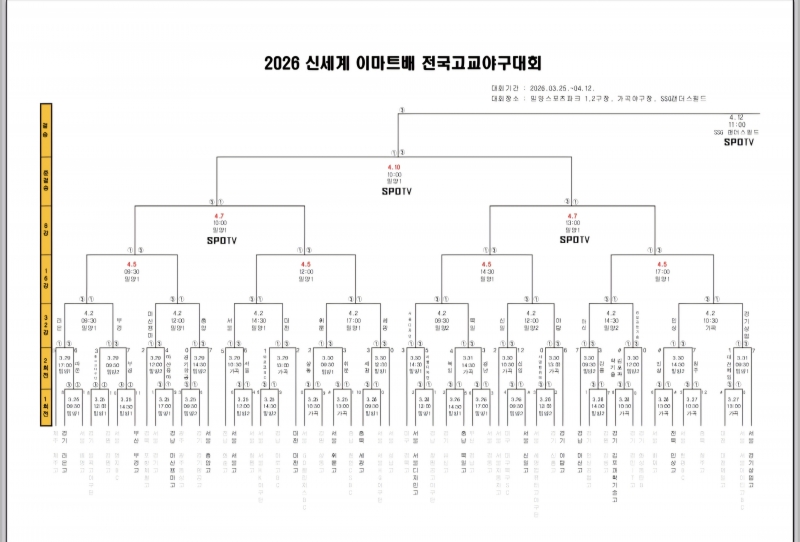 2026 신세계 이마트배 전국고교야구대회 4일(토) 경기가 우천으로 취소되었다.