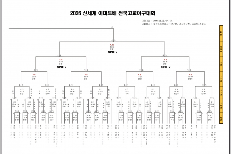 2026 신세계 이마트배 전국고교야구대회 4일(토) 경기 우천 취소