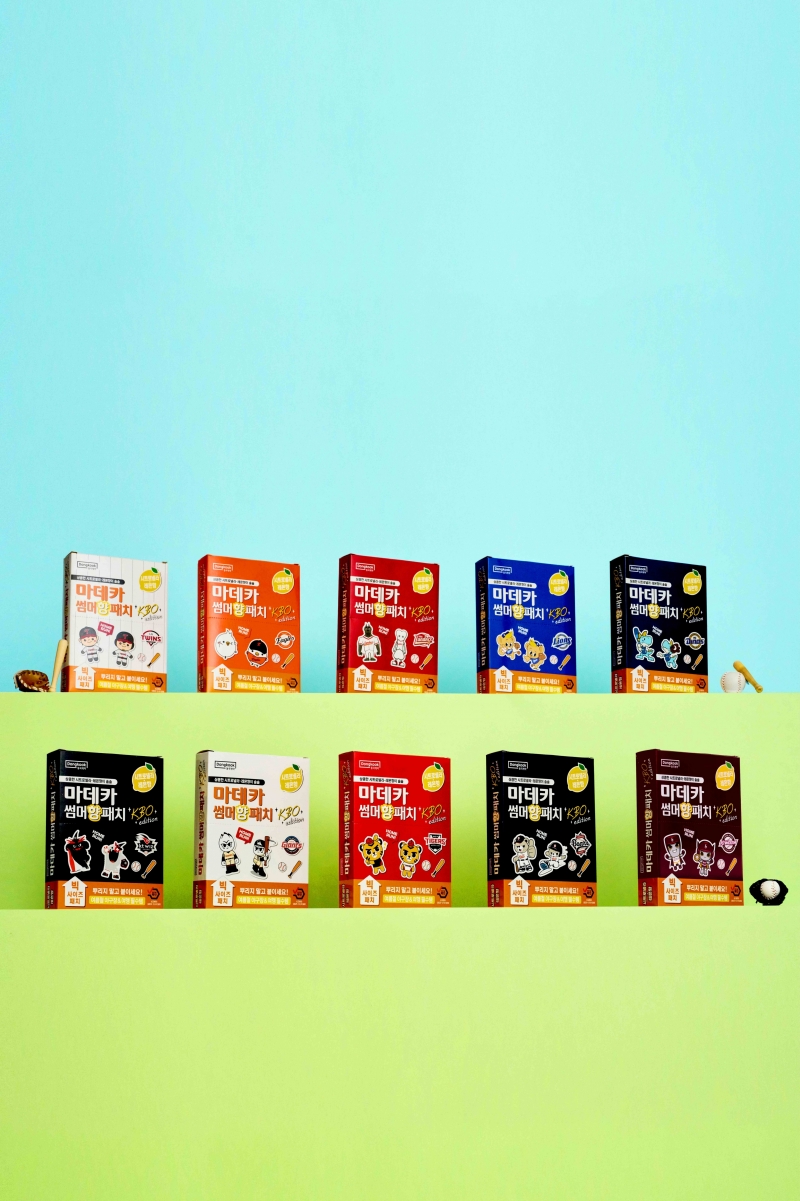 함께 출시되는 ‘마데카 썸머 향 패치 KBO 에디션’은 KBO리그 10개 구단의 마스코트와 엠블럼, 다양한 야구 요소를 반영한 디자인을 적용해 유니폼이나 가방 등에 부착하여 개성을 표현할 수 있다. 또한, 섬유유연제 향으로 널리 사용되는 포근한 코튼향과 야외 활동 시 모기 등 해충들이 기피하는 향으로 알려진 시트로넬라향 2가지를 사용해서 선택의 폭을 넓혔다.