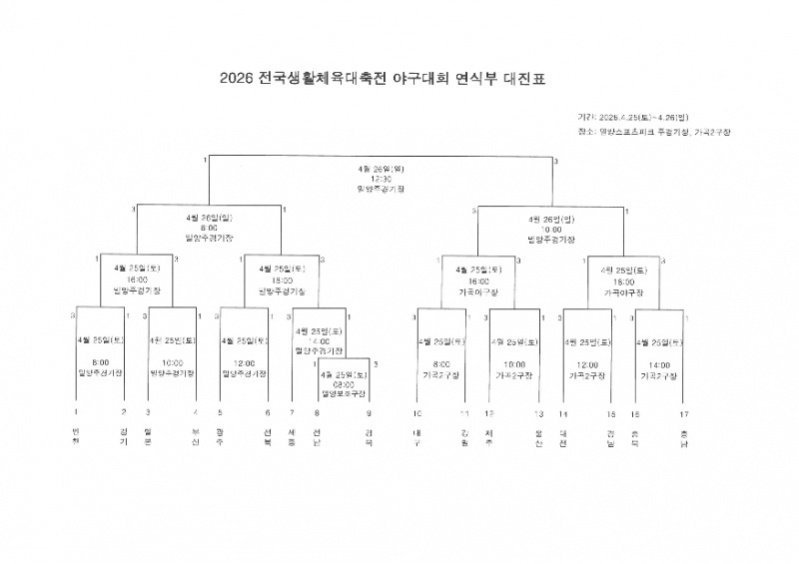 전국 생활체육 야구 동호인들이 각 시도를 대표해 참가하는 ‘2026 전국생활체육대축전 야구대회’가 4월 25일(토)부터 이틀간 경상남도 밀양시에서 개최된다.