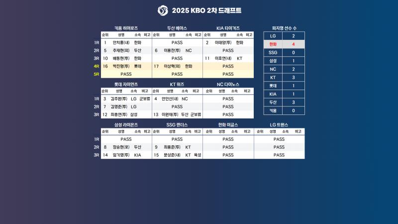 KBO는 11월 19일(수) 2025 KBO 2차 드래프트를 실시했다. 비공개로 실시된 이번 KBO 2차 드래프트에서는 10개 구단 총 17명의 선수가 지명됐다. 2025 KBO 2차 드래프트 현장 사진. KBO 제공  ..