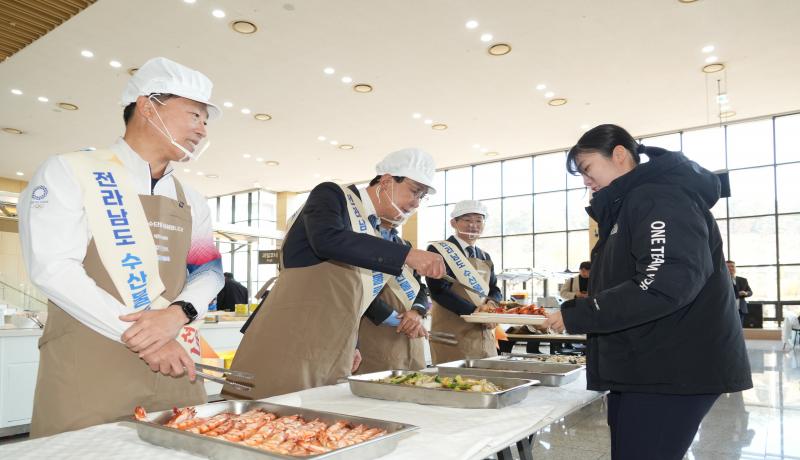 - 국가대표 사기 진작을 위해 2023년부터 3회째 진행 대한체육회(회장 유승민)는 11월 12일(수) 해양수산부(장관 전재수), 전라남도(지사 김영록), 수협중앙회(회장 노동진)와 함께 진천 국가대표선수촌에서 '우리수산물데이' 행..