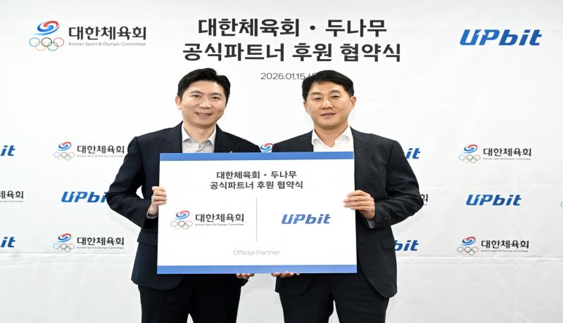 - 최상위 후원등급 공식파트너로서 2026 밀라노코르티나동계올림픽부터 팀코리아 응원 공동마케팅 추진 예정 대한체육회(회장 유승민)는 1월 15일(목) 디지털자산 거래소 업비트를 운영하는 두나무(대표이사 오경석)와 핀테크(가상자산 거래) 부문 최상위 후원등..