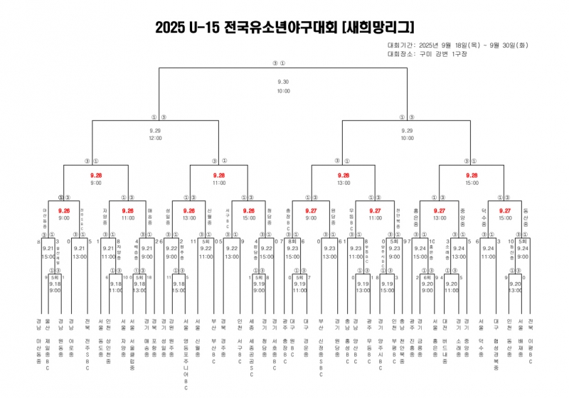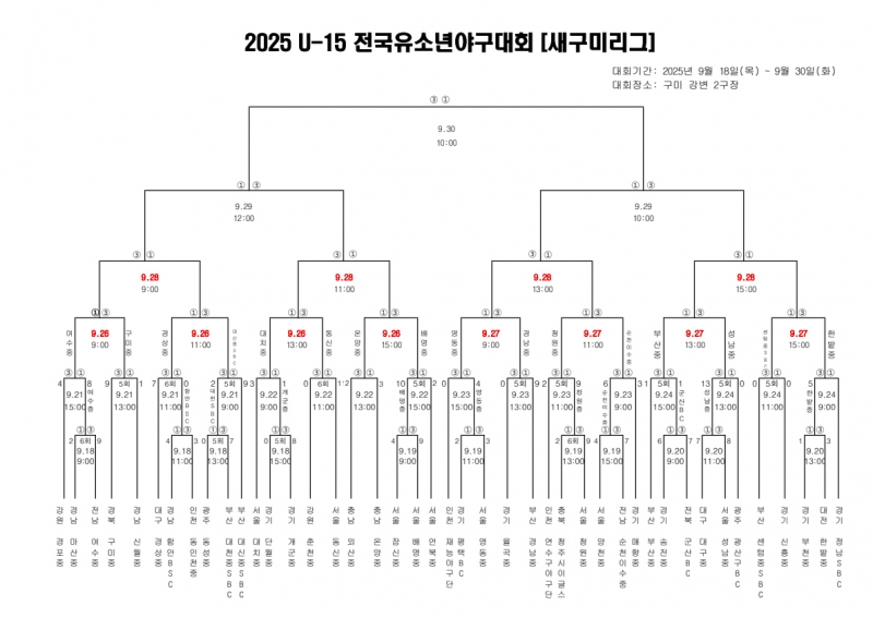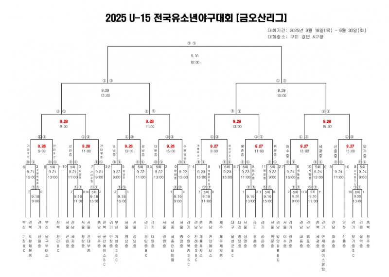 2025 U-15 전국유소년야구대회 25일(목) 경기가 우천으로 순연되었다.