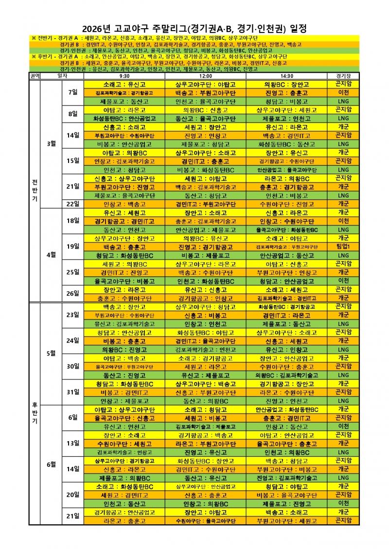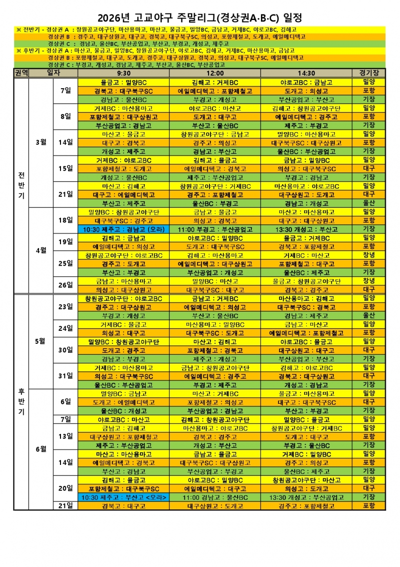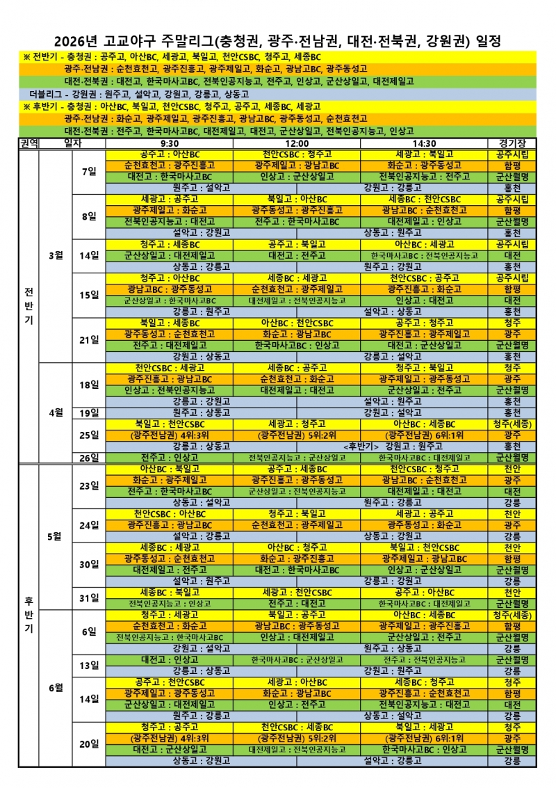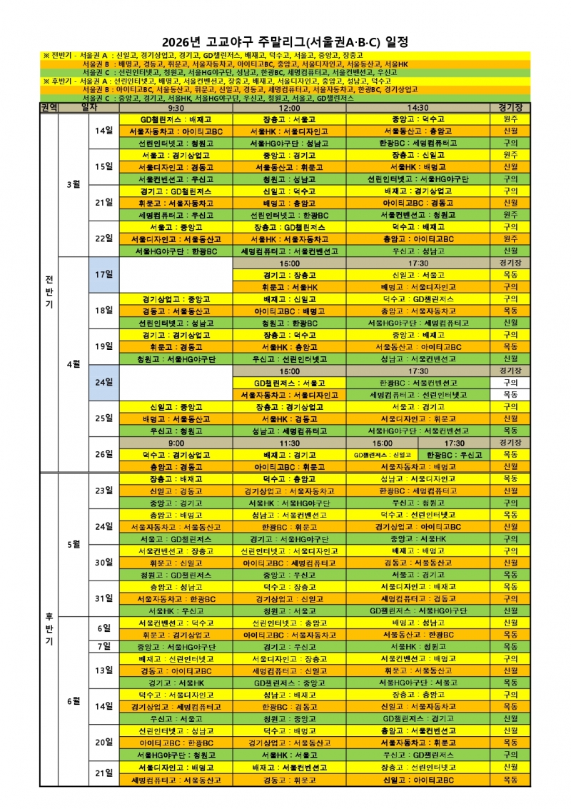 2026 고교야구 주말리그 일정이 확정되었다.